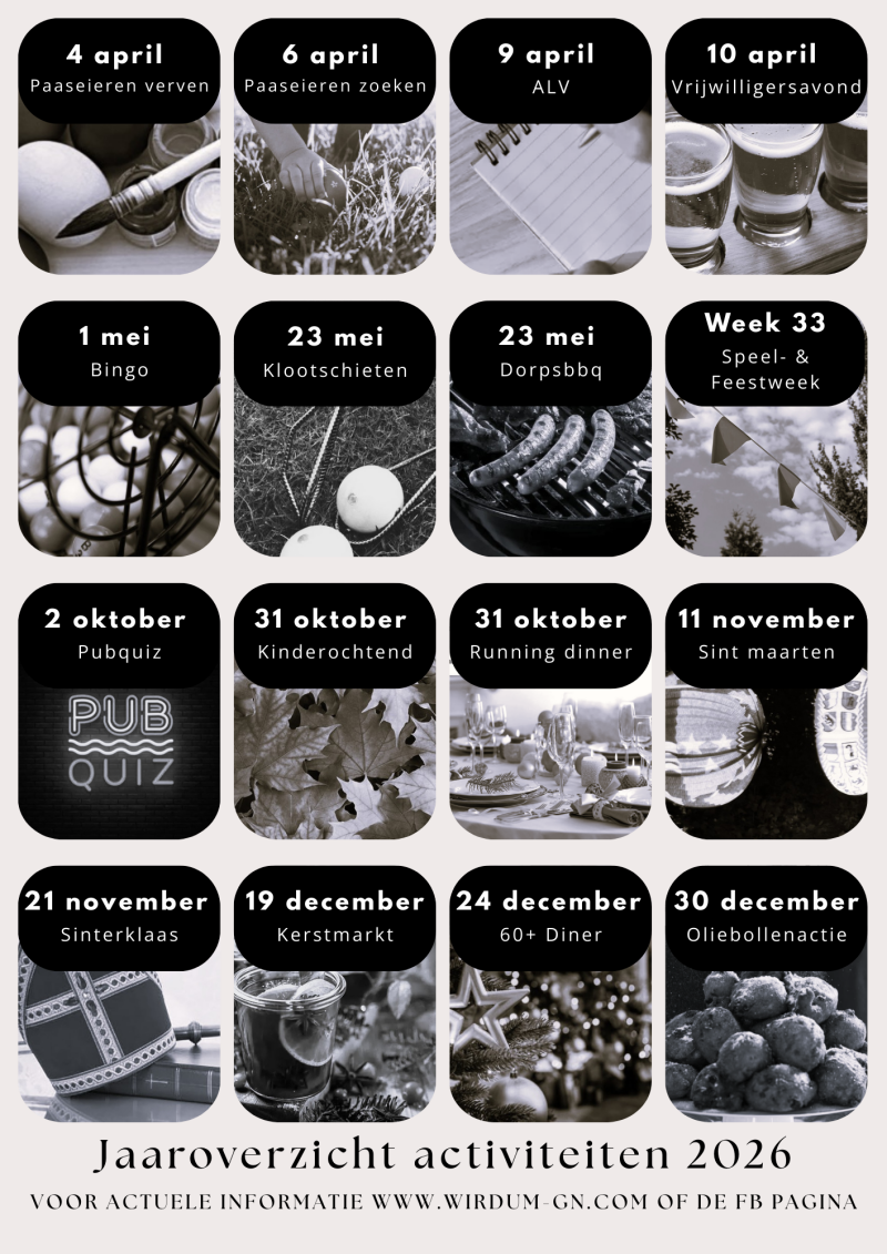 In de Rondom Wirdum agenda zijn verschillende activiteiten onder verkeerde data genoteerd, we zullen zo snel mogelijk een flyer en bericht verspreiden met de juiste data.