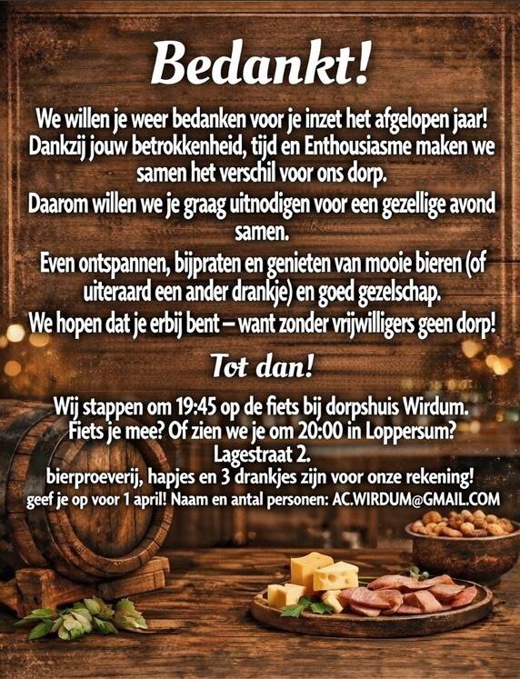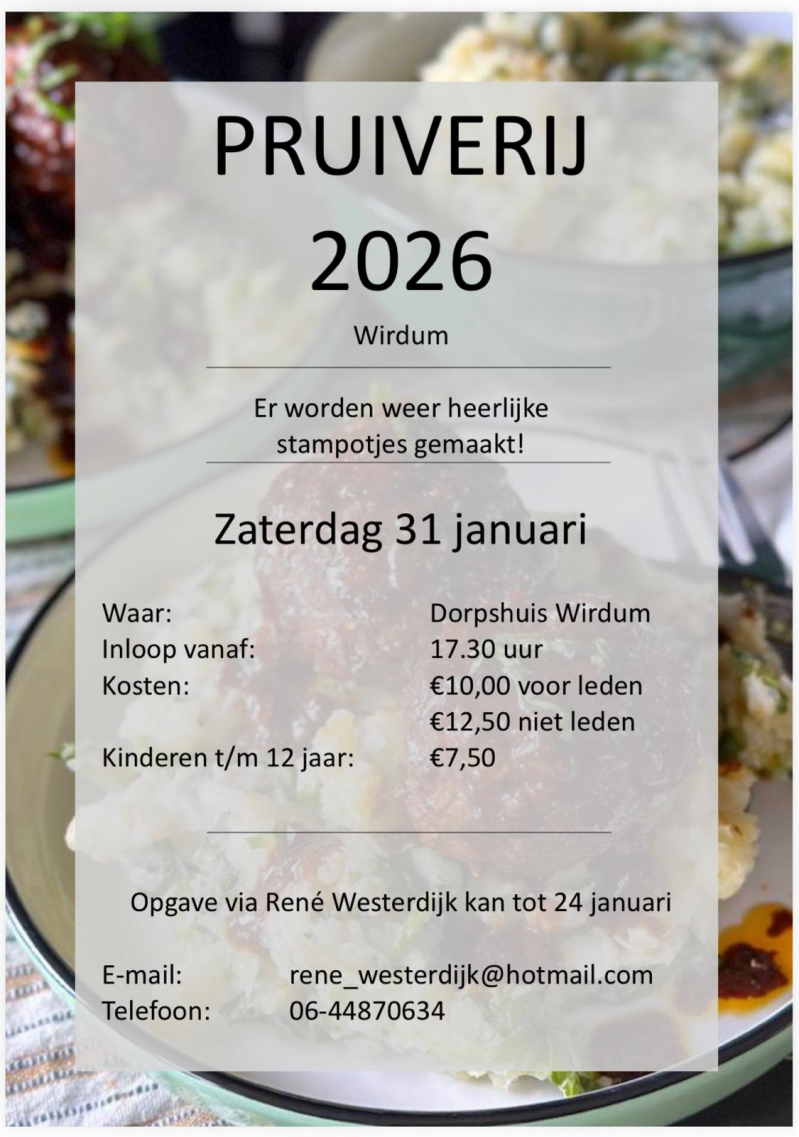 De pruiverij van 2026 komt er weer aan. Wil je gezellig mee eten, geef je snel op bij René Westerdijk!